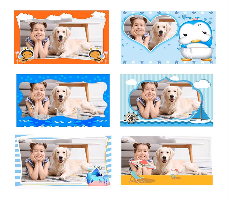 Шаблони додають фото рамки, декоративні елементи та тематичні деталі, які перетворюють звичайний знімок на готову картинку для друку або збереження.