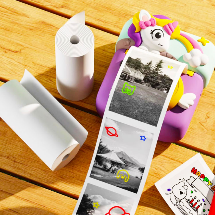 Никаких красок или картриджей: печать происходит на специальной термобумаге, которая безопасна и легко вставляется.