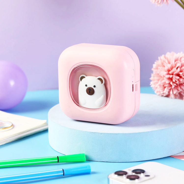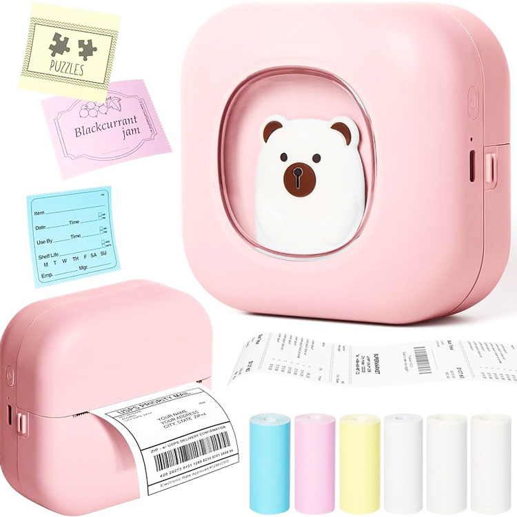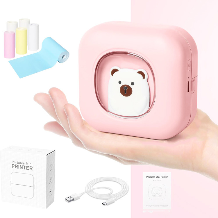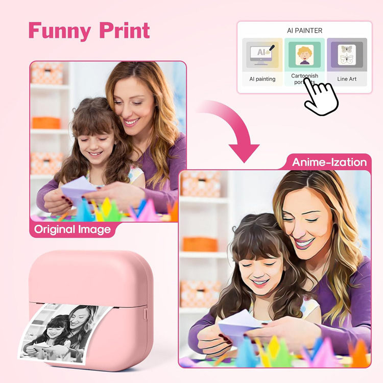 Розовый мини-принтер работает без чернил, что делает его безопасным и экономичным для семьи.
